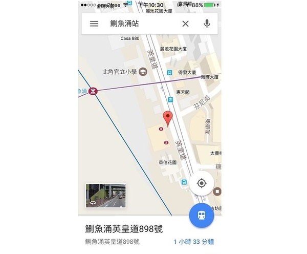 小記其實是個不太會看地圖的人,在旅遊時有了街景檢視的幫助,記住目的地的樣子,就能讓找路變得更順利了。只要長按地圖上的一個點,上面就會顯示紅色的位置標記,右下角亦會顯示該地點的照片,然後按一下那張照片,就能檢視街景了。