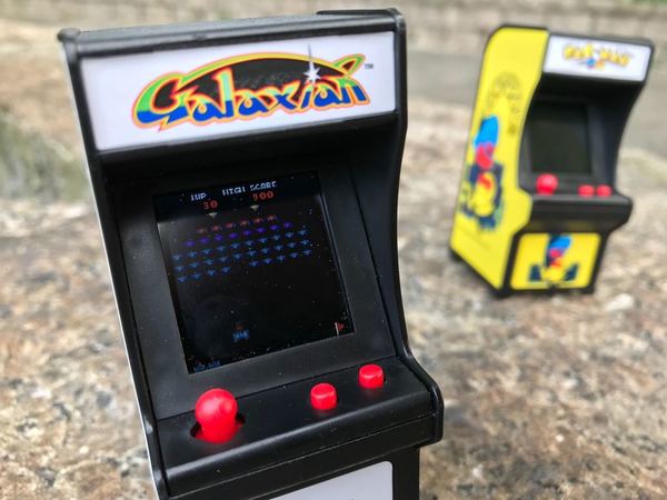 這款超迷你街機 Tiny Arcade 移植了 Namco 於 70 年代大熱的經典遊戲,機身只有大約 9cm 高,闊 4.5cm,大約比一張八達通的高,於迷你機身上附有一個匙扣,方便用家把它掛於書包上。螢幕大約 2.5cm × 2.5cm 大,而且是一個彩色螢幕,開機後就會有經典音樂聲響起,製作認真。