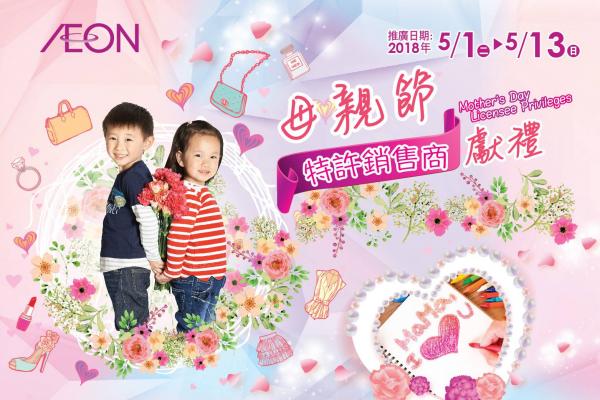 AEON多間特許銷售商齊推出母親節限時優惠,當中包括多款休閒服飾、內衣、美容護理、精品、保健產品及餐飲優惠,可以和媽媽行街食嘢買禮物!