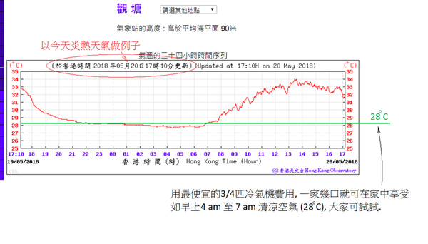 bbu2 懶理小記,續曰:「這方法是用最便宜的 3/4 匹冷氣機費用, 一家幾口就可在家中享受如早上 4 am 至 7 am 清涼空氣 (28 度), 大家可試試。」